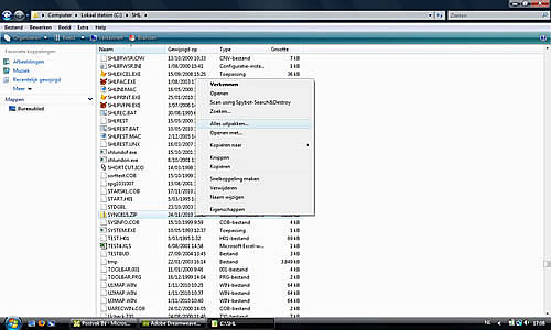 Klik links boven in het venster op Bestand  en Alles uitpakken;Zoek via Bladeren de map met de programmabestanden SHL; |